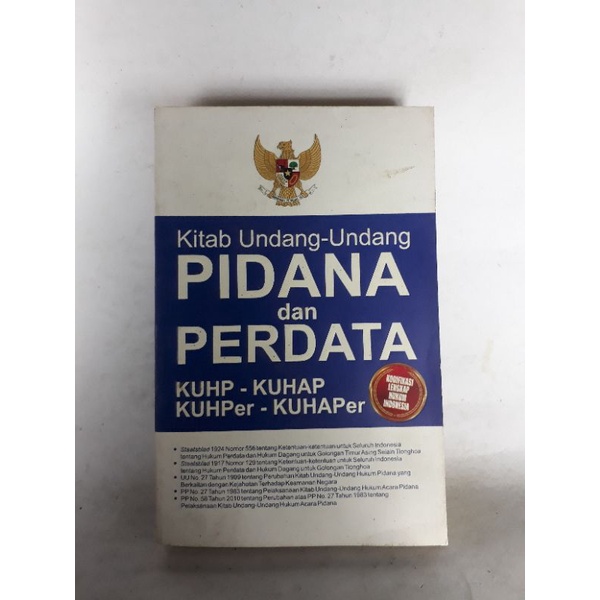 Produk Kitab Undang-Undang PIDANA dan PERDATA KUHP - KUHAP KUHPer - KUHAPer Kodifikasi Lengkap Hukum Indonesia . t104 ini harganya adalah Rp. 55.555,00 dan saat ini sedang Diskon , Produk ini sendiri saat saya tulis Artikel ini sudah dilihat sebanyak kali dan sudah disukai sebanyak 1 kali.